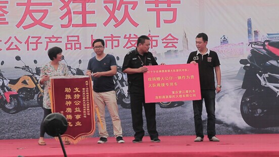 在其乐融融的氛围中,津沙摩托也向洛阳红十字会敬赠了大公仔一辆,用于紧急救援.助力公益,从我做起,不仅仅是一台车,津沙摩托更想借活动传递一种我为人人的公益态度,一种的爱在心中的正能量!